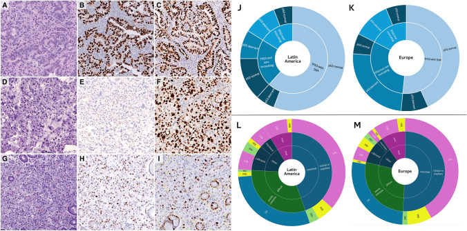 Results: A total of 259 patients were included in the study: 137 (53%) from LATAM and 122 (47%) from Europe. Significant biological differences were detected between European and LATAM patients. Low representation of chromosomal instability (CIN) and HER2 positive cases were found in LATAM. MUC6 and PD-L1 were more frequently overexpressed in European cases, showing a significant correlation across the entire study population, with this association being especially pronounced in MMRdeficient cases. Both TP53 mutation by next-generation sequencing and p53 immunohistochemical aberrant pattern were linked with features associated with chromosomal instability. No regional differences were observed in H. pylori prevalence or abundance, indicating that the afore mentioned variations cannot be attributed to this factor.