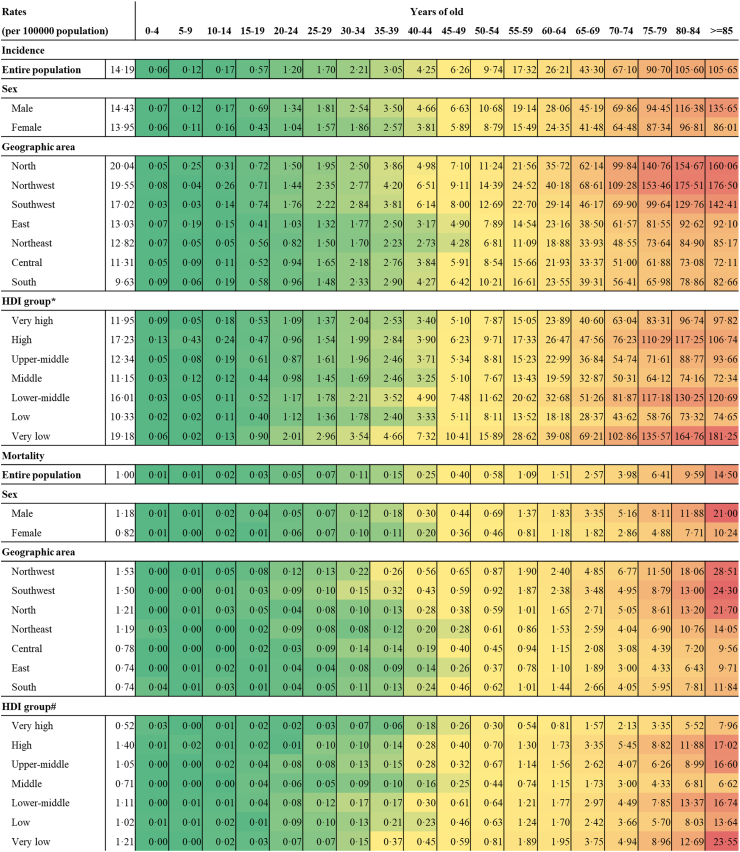 Findings: During the 12 months period between January and December 2021, a total number of 200,112 PE patients and 14,123 deaths were recorded from 5101 hospitals in the HQMS database. The incidence of PE was 14.19 (200,112, 95% CI 14.13-14.26) per 100,000 population and the mortality rate was 1.00 (95% CI 0.99-1.02) per 100,000 population. The incidence of PE was higher in male patients (14.43 per 100,000 population) than in female patients (13.95 per 100,000 population). Disparities of incidence and mortality rates were shown within age groups and geographical regions. The incidence and mortality rates of PE showed decreasing trend with increasing geographical density of VTE-related facilities and VTE prevention system developments.
