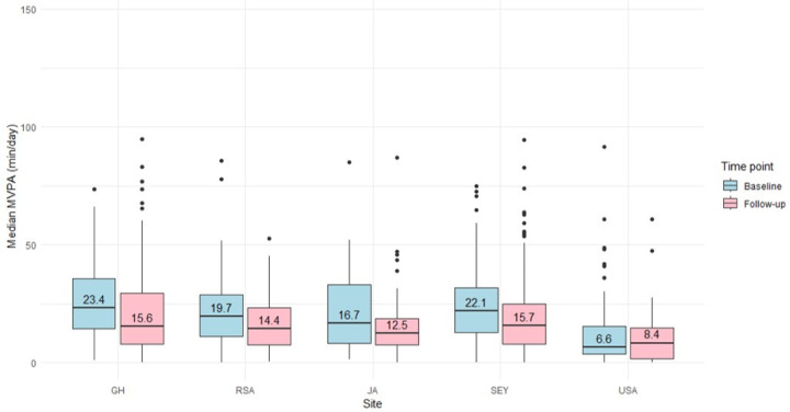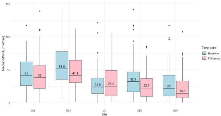Objectively measured moderate-to-vigorous physical activity does not attenuate prospective weight gain among African-origin adults spanning the epidemiological transition