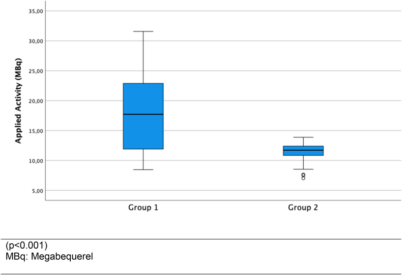Results: 926 (mean age: 61.45 years) patients received subdermal injection of radiolabeled nanocolloids between tumor and axilla. SLN was identified intraoperatively in 473 of 498 patients (94.98 %) in group 1, and in 415 of 428 patients (96.96 %) in group 2 (p = 0.129). Lymphoscintigraphy detected SLN in 407 of 428 (95.09 %) patients in group 2. Due to the additional SLN imaging in group 2, the time between radiotracer injection and start of surgery was significantly prolonged (p < 0.001). A reduction of applied activity from a median of 18 MBq in group 1 to a median of 12 MBq in group 2 had no negative effect on the SLN identification.