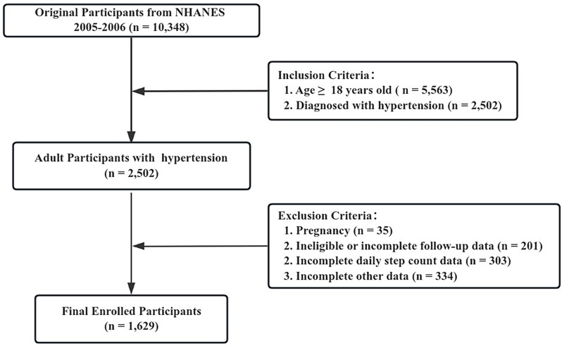 Associations of daily step count with all-cause mortality and cardiovascular mortality in hypertensive US adults: a cohort study from NHANES 2005-2006