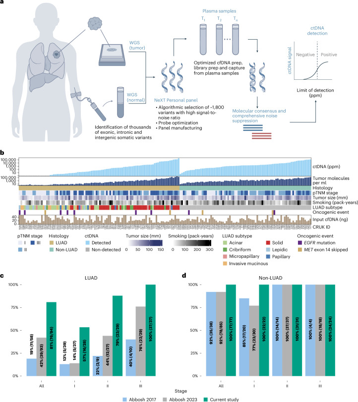 Competing interests: M.A.B. has consulted for Achilles Therapeutics. D.A.M. reports receiving speaker fees from AstraZeneca, Eli Lilly, Bristol Myers Squibb and Takeda, consultancy fees from AstraZeneca, Thermo Fisher, Takeda, Amgen, Janssen, MIM Software, Bristol Myers Squibb and Eli Lilly and has received educational support from Takeda and Amgen. M.J.-H. has consulted for, and is a member of, the Achilles Therapeutics scientific advisory board (SAB) and steering committee, and has received speaker honoraria from Pfizer, Astex Pharmaceuticals and the Oslo Cancer Cluster. N.M. has received consultancy fees and has stock options in Achilles Therapeutics. C.S. acknowledges grants from AstraZeneca, Boehringer-Ingelheim, Bristol Myers Squibb, Pfizer, Roche-Ventana, Invitae (previously Archer Dx Inc, collaboration in minimal residual disease sequencing technologies), Ono Pharmaceutical and Personalis. He is chief investigator for the AZ MeRmaiD 1 and 2 clinical trials and is the steering committee chair. He is also co-chief investigator of the NHS Galleri trial funded by GRAIL and a paid member of GRAIL’s SAB. He receives consultant fees from Achilles Therapeutics (and is a SAB member), Bicycle Therapeutics (and is a SAB member), Genentech, Medicxi, China Innovation Centre of Roche (formerly Roche Innovation Centre – Shanghai, Metabomed (until July 2022)), Relay Therapeutics (and is a SAB member), Saga Diagnostics (and is a SAB member) and the Sarah Cannon Research Institute. C.S has received honoraria from Amgen, AstraZeneca, Bristol Myers Squibb, GSK, Illumina, MSD, Novartis, Pfizer and Roche-Ventana. C.S. has previously held stock options in Apogen Biotechnologies and GRAIL, and currently has stock options in Bicycle Therapeutics and Relay Therapeutics, and has stock and is a co-founder of Achilles Therapeutics. G.B., C.W.A., S.M.B, R.C., J.H., B.L., J.L., F.C.P.N., J.N., R.M.P. and R.O.C. are employees and stockholders of Personalis. A.M.F. is listed as a co-inventor on a patent application to determine methods and systems for tumor monitoring (PCT/EP2022/077987; ‘Methods and systems for tumour monitoring’). S.V. is a co-inventor on a patent for methods for detecting molecules in a sample (US patent no. 10578620; ‘Methods for detecting molecules in a sample’). M.J.-H. is listed as a co-inventor on a European patent application related to methods to detect lung cancer (PCT/US2017/028013; ‘Methods for lung cancer detection’); this patent has been licensed to commercial entities and, under terms of employment, M.J.-H. is due a share of any revenue generated from such license(s). N.M. holds European patents related to targeting neoantigens (PCT/EP2016/059401; ‘Method for treating cancer’), identifying patient response to immune checkpoint blockade (PCT/EP2016/071471; ‘“Immune checkpoint intervention” in cancer’), determining HLA LOH (PCT/GB2018/052004; ‘Analysis of HLA alleles in tumours and the uses thereof’), and predicting survival rates of patients with cancer (PCT/GB2020/050221; ‘Method of predicting survival rates for cancer patients’). C.S declares a patent application for methods to lung cancer (PCT/US2017/028013); targeting neoantigens (PCT/EP2016/059401); identifying patent response to immune checkpoint blockade (PCT/EP2016/071471); methods for lung cancer detection (US20190106751A1); identifying patients who respond to cancer treatment (PCT/GB2018/051912); determining HLA LOH (PCT/GB2018/052004); predicting survival rates of patients with cancer (PCT/GB2020/050221); and methods and systems for tumor monitoring (PCT/EP2022/077987). C.S. is an inventor on a European patent application (PCT/GB2017/053289) related to assay technology to detect tumor recurrence. This patent has been licensed to a commercial entity, and under their terms of employment, C.S is due a revenue share of any revenue generated from such license(s). The other authors declare no competing interests.