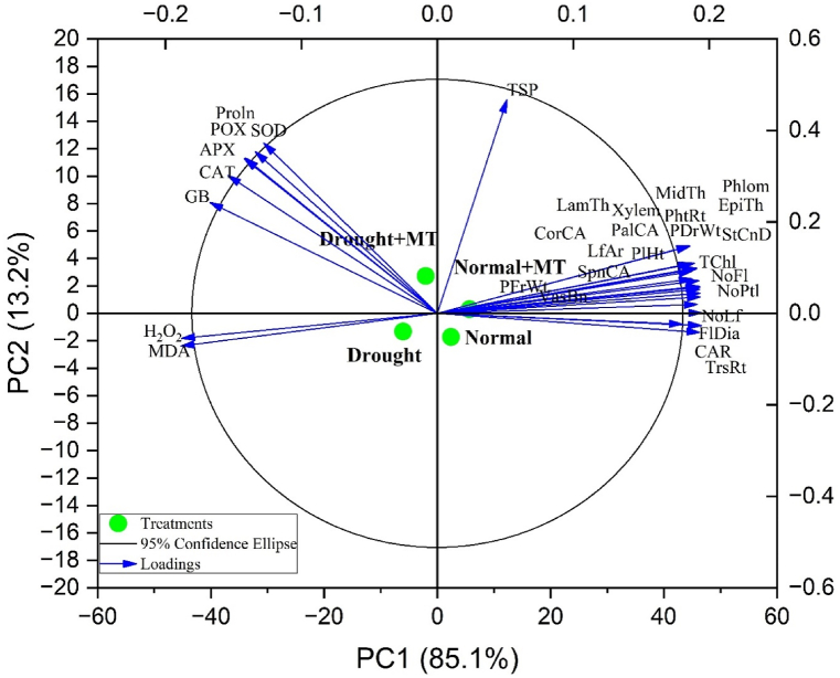 Melatonin induces drought stress tolerance by regulating the physiological mechanisms, antioxidant enzymes, and leaf structural modifications in Rosa centifolia L