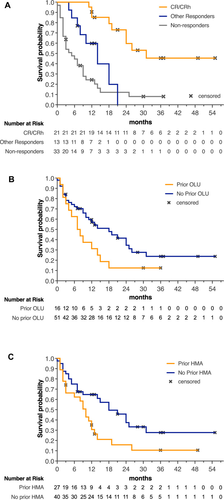 Conclusions: Olutasidenib plus azacitidine induced high response rates and durable remissions with a tolerable side effect profile in patients with R/R AML with diverse treatment histories. The results represent another therapeutic option for patients with mIDH1 AML who may benefit from a targeted therapy.
