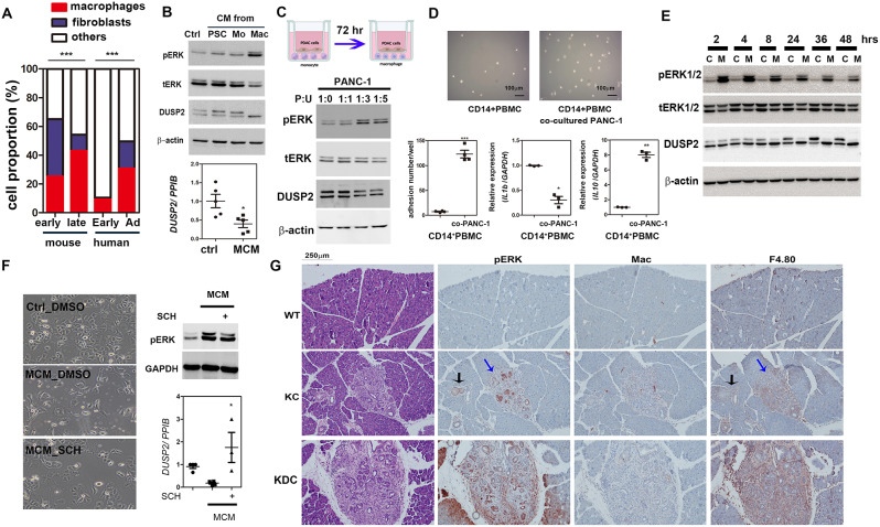 Methods: Single-cell RNA sequencing and analysis of primary PDAC tumors were conducted. Genetically engineered pancreas-specific Kras-mutated, dual specificity phosphatase-2 (Dusp2) knockout mouse models were established. Human and mouse primary pancreatic cancer cell lines were used for in vitro assessment of cancer characteristics. Tumor progression was studied via pancreas orthotopic and portal vein injection in the immune-competent mice. Clinical relevance was validated by digital spatial transcriptomic analysis of PDAC tumors.