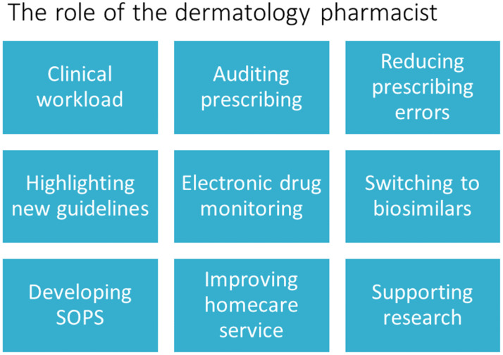 - Bryant K, Parslew R, Al-Sharqi A, Bharati A. New ways of working in dermatology: developing the role of a specialist dermatology clinical pharmacist. Br J Dermatol. 2019;181(S1):29–30.