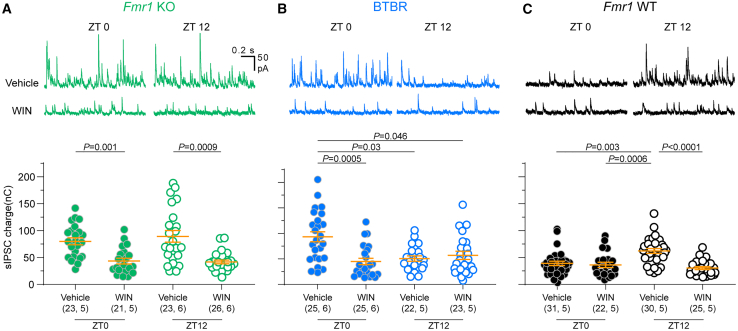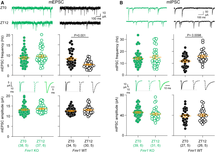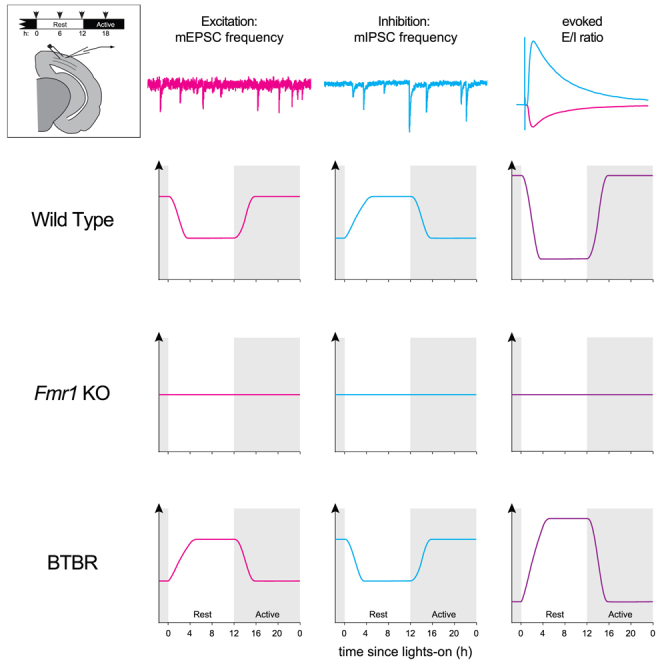Alterations to the excitation/inhibition (E/I) ratio are postulated to underlie behavioral phenotypes in autism spectrum disorder (ASD) patients and mouse models. However, in wild type mice the E/I ratio is not constant, but instead oscillates across the 24-h day. Therefore, we tested whether E/I regulation, rather than the overall E/I ratio, is disrupted in two ASD-related mouse lines: Fmr1 KO and BTBR, models of syndromic and idiopathic ASD, respectively. The E/I ratio is dysregulated in both models, but in different ways: the oscillation is lost in Fmr1 KO and reversed in BTBR mice. Phenotypes in both models associate with differences the timing of excitatory and inhibitory synaptic transmission and endocannabinoid signaling compared to wild type mice, but not with altered sleep. These findings raise the possibility that ASD-related phenotypes may be produced by a mismatch between E/I and behavioral state, rather than alterations to overall E/I levels per se.