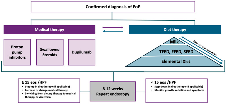 Keywords: Th2 immune response; cow’s milk proteins; dietary therapy; elimination diet; eosinophilic esophagitis; esophageal inflammation; food hypersensitivity; histologic remission; milk allergy.