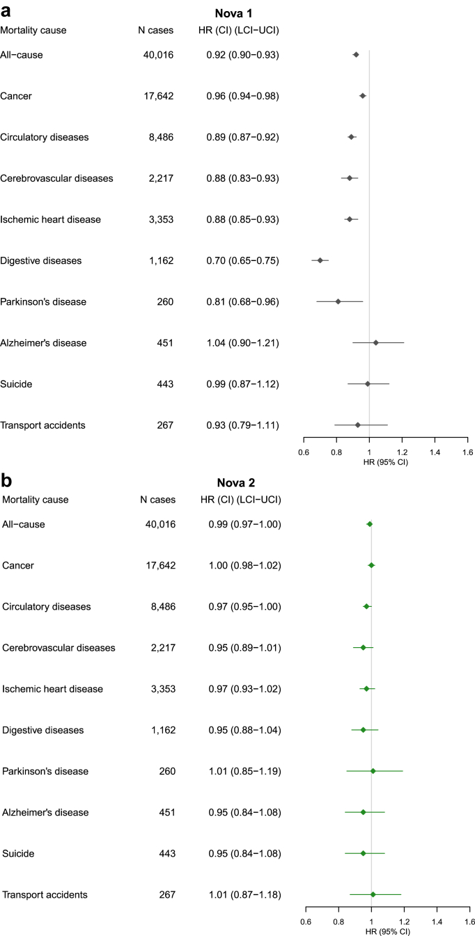 Associations between degree of food processing and all-cause and cause-specific mortality: a multicentre prospective cohort analysis in 9 European countries