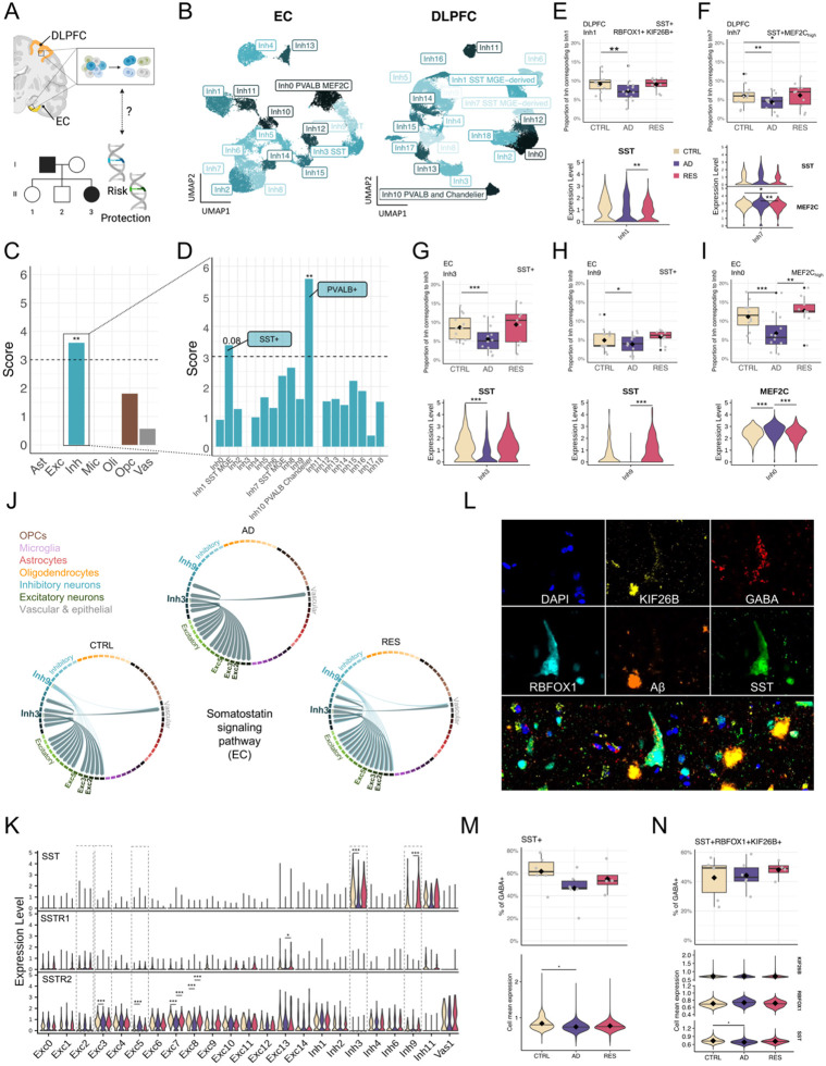 Conclusions: We identified molecular and cellular hallmarks of cognitive resilience, an intermediate state in the AD continuum. Resilience mechanisms include preservation of neuronal function, maintenance of excitatory/inhibitory balance, and activation of protective signaling pathways. Specific excitatory neuronal populations appear to play a central role in mediating cognitive resilience, while a subset of vulnerable SST interneurons likely provide compensation against AD-associated dysregulation. This study offers a framework to leverage natural protective mechanisms to mitigate neurodegeneration and preserve cognition in AD.
