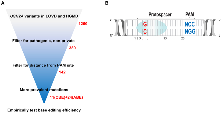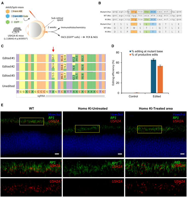 Keywords: AAV; USH2A; Usher syndrome; adenine base editor; base editing; cytosine base editor; photoreceptors; retina; retinitis pigmentosa.