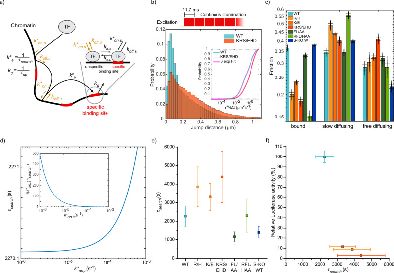 Transcription factors (TFs) such as RBPJ in Notch signaling bind to specific DNA sequences to regulate transcription. How TF-DNA binding kinetics and cofactor interactions modulate gene regulation is mostly unknown. We determine the binding kinetics, transcriptional activity, and genome-wide chromatin occupation of RBPJ and mutant variants by live-cell single-molecule tracking, reporter assays, and ChIP-Seq. Importantly, the search time of RBPJ exceeds its residence time, indicating kinetic rather than thermodynamic binding stability. Impaired RBPJ-DNA binding as in Adams-Oliver-Syndrome affect both target site association and dissociation, while impaired cofactor binding mainly alters association and unspecific binding. Moreover, our data point to the possibility that cofactor binding contributes to target site specificity. Findings for other TFs comparable to RBPJ indicate that kinetic rather than thermodynamic DNA binding stability might prevail in vivo. We propose an effective in vivo binding energy landscape of TF-DNA interactions as instructive visualization of binding kinetics and mutation-induced changes.
