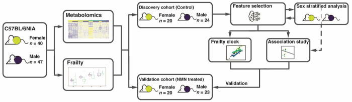 Keywords: aging; association; frailty; frailty index; longitudinal study; metabolites; mouse models; sex difference.