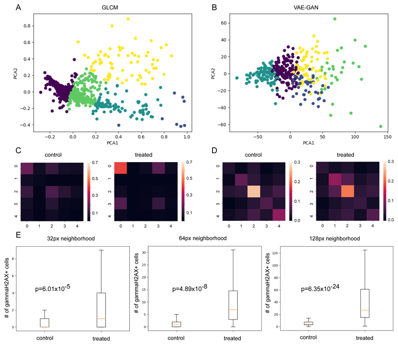 The morphology of individual cells can reveal much about the underlying states and mechanisms in biology. In tumor environments, the interplay among different cell morphologies in local neighborhoods can further improve this characterization. In this paper, we present an approach based on representation learning to capture similarities and subtle differences in cells positive for γH2AX, a common marker for DNA damage. We demonstrate that texture representations using GLCM and VAE-GAN enable profiling of cells in both singular and local neighborhood contexts. Additionally, we investigate a possible quantification of immune and DNA damage response interplay by enumerating CD8+ and γH2AX+ on different scales. Using our profiling approach, regions in treated tissues can be differentiated from control tissue regions, demonstrating its potential in aiding quantitative measurements of DNA damage and repair in tumor contexts.
