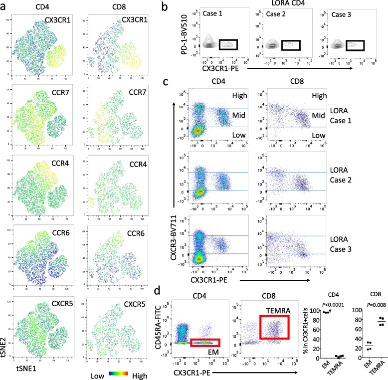 Results: CX3CR1+cytotoxic CD4+ T cells were specifically increased in untreated, active patients with LORA, displaying features of CXCR3mid age-associated T helper cells known as "ThA". CX3CR1⁺CD4⁺ T cells were identified as a cytotoxic ThA subset, as nearly all of these cells specifically expressed granzyme B. These cells were observed in enlarged lymph nodes and were found to infiltrate synovial tissues from patients with LORA. The proportions of CX3CR1+CD4+ T cells positively correlated with arthritis activity in LORA. The number of cells decreased after treatment with methotrexate, tumor necrosis factor inhibitors, and interleukin-6 inhibitors, whereas T-cell activation modulators did not affect them. Moreover, PD-1+CD38+CX3CR1+CD4+ T cells were identified as a treatment-resistant T cell subset that was characteristically increased in difficult-to-treat RA. CX3CR1+CD8+ T cells showed no significant difference between RA patients and healthy individuals, and no correlation with disease activity was observed. However, a correlation with age was observed in RA patients.