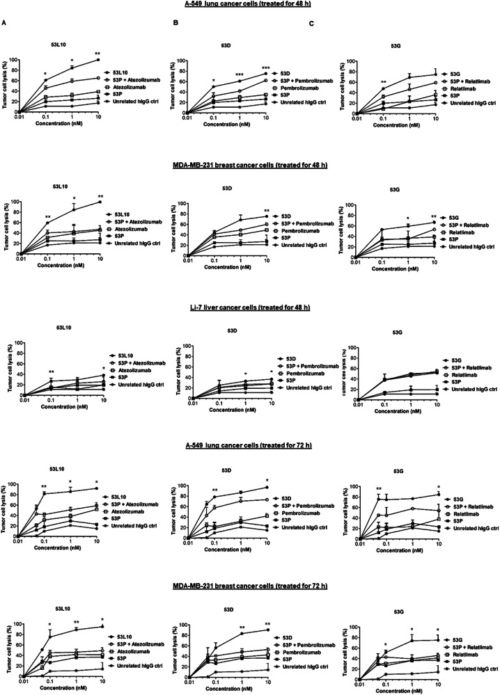 Competing interests: The authors declare that the patent (PCT/JP2023/024487) relative to the novel tri-specific tribodies was recently filed, and the authors AY, TI, KK, SH, and KN are employees of Chiome Bioscience Inc. Ethics approval and consent to participate: All methods were performed in accordance with the relevant guidelines and regulations. No studies on human participants were carried out. All animal experiments in this study were approved and conducted in accordance with the Institutional Animal Care and Use Committee guidelines of Chiome Bioscience Inc. (Shibuya-Ku, Tokyo Japan). The name of committee is Chiome Bioscience Animal Experimentation Committee; Registration number: A2024-004. Date of approval: March 19, 2024 Study title: Efficacy evaluation of a novel trispecific Tribody molecule in a subcutaneous tumor model of human cancer cells expressing 5T4 on the cell surface and human PBMC mixed cell mouse model or human PBMC engraftment model in subcutaneous transplantation of cancer cells in mice.