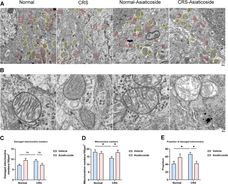 Results: The behavioral results revealed that asiaticoside significantly ameliorated CRS-induced depressive symptoms, as evidenced by increased sucrose preference and reduced immobility time. At the molecular level, asiaticoside enhanced the expression of brain-derived neurotrophic factor (BDNF), phosphorylated tropomyosin receptor kinase B (pTrkB), phosphorylated nuclear factor erythroid 2-related factor 2 (pNrf2), glutathione peroxidase 4 (GPX4), and solute carrier family 7 member 11 (SLC7A11), indicating its neuroprotective and antioxidative effects. In addition, asiaticoside suppressed the expression of ferroptosis markers, including ferritin light chain (FLC) and transferrin receptor only in CA1 region. Transmission electron microscopy (TEM) further confirmed that asiaticoside preserved mitochondrial integrity in CA1 neuronal cells.