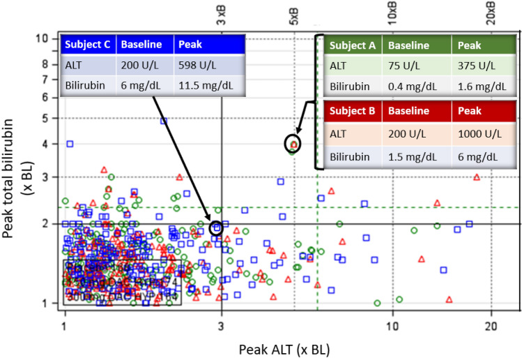 Based on the late Dr. Hyman Zimmerman's observation that hepatocellular drug-induced liver injury (DILI) leading to jaundice carries a ≥ 10% fatality risk (coined as Hy's law by others), evaluation of Drug-Induced Serious Hepatotoxicity (eDISH) continues to play a central role in the assessment of a study drug's liability for acute hepatocellular DILI. The eDISH identifies drugs in clinical trials with DILI fatality (death or transplant) risk that may be unacceptable in a post-market setting. As a two-dimensional graph that plots peak total bilirubin (TB) versus peak serum aminotransferase levels for each patient during study drug or comparator treatment, eDISH identifies potential cases of acute, modest, and serious hepatocellular DILI for in-depth analysis of liver tests (LT) and clinical course so that the likelihood of causal association with the study drug can be determined. Unfortunately, the generalizable utility of this tool only pertains to trials enrolling patients with normal or near normal (NNN) baseline (BL) serum LTs. The eDISH does not necessarily apply to trials of patients with abnormal baseline (ABN-BL) LTs that often coincide with underlying liver disorders. Because drug development programs being reviewed by the FDA increasingly target liver disorders, we are often challenged to evaluate DILI risk in trials of patients with ABN-BL LTs. Also, the high background prevalence of metabolic dysfunction associated steatotic liver disease (MASLD) means patients with LTs above NNN may need to be enrolled in trials treating non-liver disorders to reflect the target population. Such study populations create challenges for industry and regulators because eDISH may not reliably categorize or identify potential cases of DILI for further analysis, as it so efficiently does in NNN-BL trials. We describe the main functionalities of eDISH in NNN-BL trials to understand what should be emulated by new tools or eDISH modifications. We then discuss non-eDISH-based plots that may be useful in ABN-BL trials.
