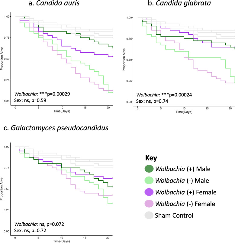 Conclusions: This study demonstrates Wolbachia's protective role in diverse fungal pathogen interactions and determines that the phenotype is broad, but with several variables that influence both the presence and strength of the phenotype. It also is a critical step forward to understanding how symbionts can protect their hosts from a variety of pathogens.