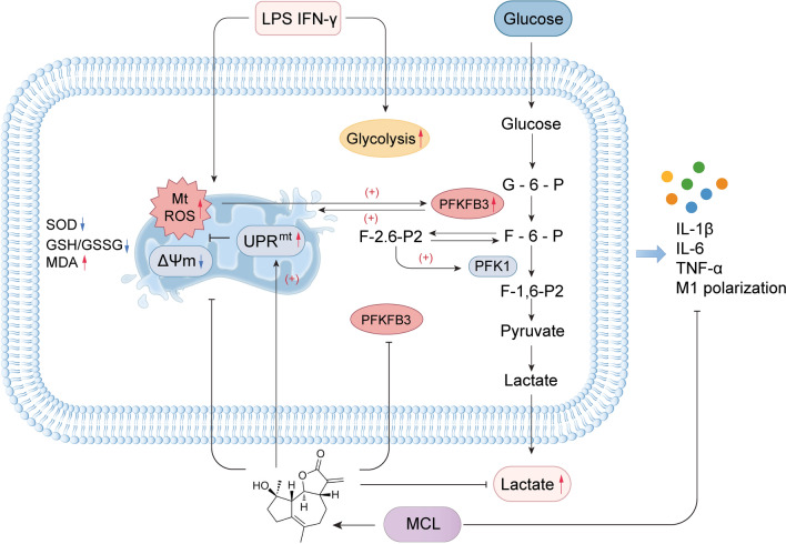 Results: MCL inhibited CLP-induced ALI, as evidenced by improvements in proinflammatory factor levels, lung wet/dry ratios, and histopathological findings. In vitro, MCL treatment significantly suppressed LPS + IFN-γ-induced M1-type polarization of RAW264.7 cells and BMDMs, as well as the production of inflammatory factors and oxidative stress. Mechanistic experiments revealed that MCL suppresses PFKFB3-driven glycolysis to reduce inflammation and activates the mitochondrial unfolded protein response (UPRmt) to alleviate mitochondrial stress. However, the therapeutic effect of MCL was diminished when PFKFB3 was overexpressed in cells.
