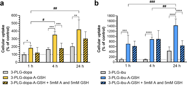 Results: Targeted nanoformulations of both drugs showed elevated cellular uptake in a time-dependent, active manner via endocytic mechanisms. Addition of free ligands inhibited the cellular internalization of targeted nanocarriers suggesting the crucial role of ligands in the uptake process. A higher permeability across the BBB model was measured for targeted nanocarriers. After crossing the BBB, targeted dopamine nanocarriers subsequently entered midbrain-like organoids derived from healthy and Parkinson's disease patient-specific stem cells. The ibuprofen-coupled targeted nanocarriers showed protective effects against cytokine-induced barrier damage.