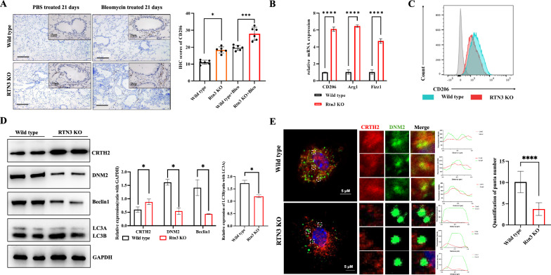 Results: We found decreased levels of RTN3 in IPF patients, bleomycin-induced mice, and TGFβ-treated cell lines. RTN3-null mice exhibited more severe pulmonary fibrosis phenotypes in old age or after bleomycin treatment. Collagen synthesis was significantly increased in RTN3-null mice lung tissues and lung fibroblasts. Mechanistic studies revealed that RTN3 deficiency reduced the ER-anchored CRTH2 in lung fibroblasts, which serves as an antifibrotic molecule via antagonizing collagen biosynthesis. Simultaneously, RTN3 deficiency reduced the autophagy degradation of CRTH2 which acts as an activator of profibrotic macrophage differentiation. Both effects of RTN3 and CRTH2 in lung fibroblasts and alveolar macrophages aggravated age-or bleomycin-induced pulmonary fibrosis. Additionally, we also identified a mutation of RTN3 in patients with ILD.