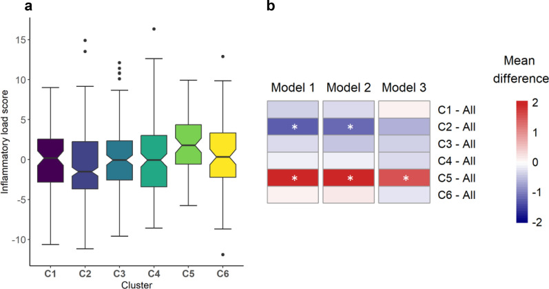 Methods: We assigned 843 participants of the KORA F4 study aged 61-82 years without T2D to the six previously defined phenotype-based clusters. Based on 73 biomarkers of subclinical inflammation, we derived an inflammation-related score ("inflammatory load") using principal component analysis to assess subclinical inflammation. Risk factors, inflammatory load as well as prevalence and incidence of (pre)diabetes-related complications were compared between the clusters using pairwise comparisons and regression analyses.