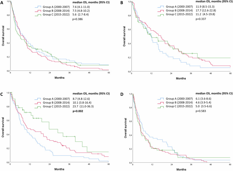 Brain metastases (BMs) are a common complication of advanced breast cancer (BC), and their management has significantly evolved. We evaluated the clinical impact of these changes dividing patients diagnosed with BCBMs at three Institutions according to year of BMs diagnosis: 2000-2007 (group A), 2008-2014 (group B) and 2015-2022 (group C). Stereotactic radiotherapy increased (p < 0.001), and WBRT decreased (p = 0.010) over time. Among HER2+ BC patients, more received anti-HER2 therapy after BM diagnosis in recent years (p < 0.011). Overall survival (OS) did not improve in the entire cohort (p = 0.260); however, OS improved in patients with HR-/HER2+ BC (median OS 8.7, 10.1, 23.7 months in group A, B, C, respectively; p = 0.002). HER2-positivity, not prognostic in group A, became prognostic in group C (p < 0.001). While therapy for patients with BCBMs significantly changed over two decades, an OS improvement was observed only in HR-/HER2+ patients, potentially due to increased availability of anti-HER2 therapies with intracranial activity.