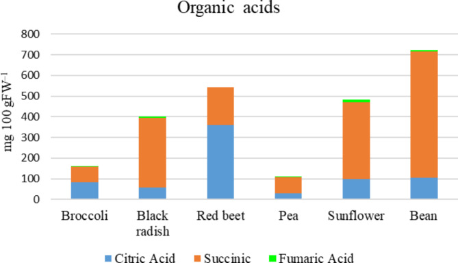Globally, one in every four individuals faces a deficiency in essential micronutrients. Harvested early from various vegetables, grains, and herbs, microgreens have rich nutritional profiles that can mitigate nutrient deficiencies. Here, we analyzed six microgreens' nutritional profiles for broccoli, black radish, red beet, pea, sunflower, and bean. Ascorbic acid content varied widely, from 32.72 mg/100 g fresh weight (FW) in red beet to 80.45 mg/100 g FW in beans. All microgreens exhibited high macro elements (mg/100 g FW), with potassium ranging from 187.07 to 416.05, magnesium from 45.96 to 86.83, calcium from 67.18 to 148.63, and phosphorus from 2.57 to 4.88. They also contained significant microelements (µg/100 g FW), including iron from 524 to 2610, manganese from 176.32 to 350.56, zinc from 31.92 to 129.78, and copper from 458.84 to 956.34. Glucose content surpassed sucrose and fructose, ranging from 0.114 to 0.580 mg/100 g FW. Among organic acids, citric acid was highest in red beet, succinic acid in beans, and fumaric acid in sunflower. Broccoli microgreens had the highest total phenolic content (825.53 mg GA/100 g FW), while beans had the highest total flavonoid content (758.0 mg RU/100 g FW). Black radish microgreens demonstrated the highest antioxidant capacity. Additionally, volatile aromatic compounds were analyzed across the six microgreen species. These findings highlight the nutritional potential of microgreens, advocating for their inclusion in diets to enhance human health. Red beet microgreens were the richest in organic acids, particularly citric acid, and flavonoids, supporting antioxidant activity, while black radish microgreens exhibited the highest DPPH antioxidant capacity and phenolic content. Bean microgreens stood out for their high ascorbic acid content. Sunflower microgreens had the highest levels of calcium and fumaric acid. Broccoli microgreens were abundant in phenolic compounds and contained high concentrations of iron and manganese. Finally, pea microgreens excelled in phosphorus and copper content.