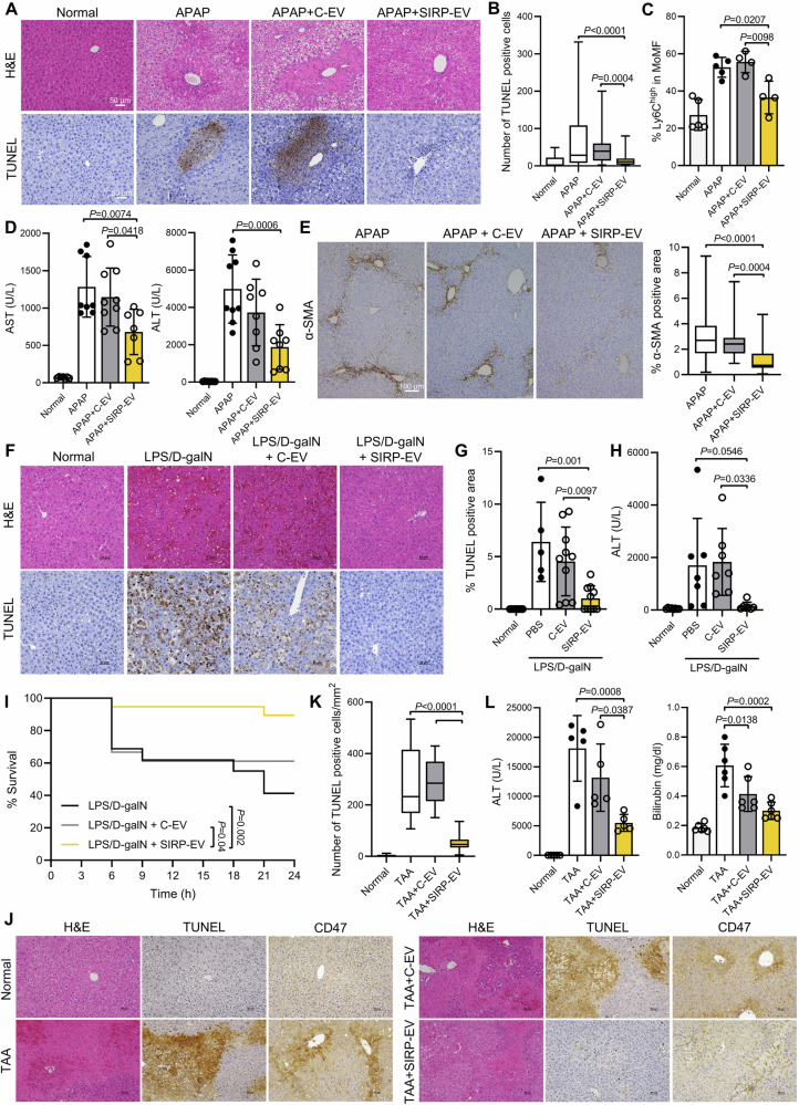 Dual-mode action of scalable, high-quality engineered stem cell-derived SIRPα-extracellular vesicles for treating acute liver failure