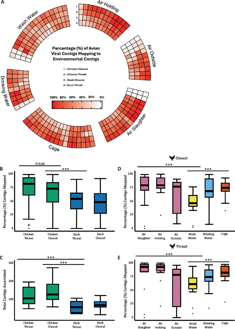 Environmental surveillance has emerged as a pivotal strategy for early detection of pathogens that pose threats to humans (1) but has not been utilized for zoonotic agents. In Asia, live-bird markets (LBMs) are key human-animal interfaces for zoonotic virus transmission (2). Traditional sampling strategies are time-consuming, expensive, threaten animal welfare and have significant occupational biosafety risks. In this study, we assessed the performance of metagenomics on environmental samples (ES) compared to traditional poultry swabs for detecting avian viral pathogens in LBMs in Cambodia. ES, including air, cage swabs, and carcass wash water, were collected alongside throat and cloacal swabs from domestic chickens and ducks across twelve sampling visits in two LBMs over a 15-month period. Viral nucleic acids were extracted and sequenced using a capture probe-based metagenomics approach. Our results show that metagenomics on ES outperformed traditional poultry samples in detecting the highly pathogenic Influenza A/H5N1, including circulating clades 2.3.4.4b and 2.3.2.1c, which were found in the environment but missed by poultry swabs on multiple occasions. Environmental metagenomics was also highly sensitive in the detection of over 40 other viruses from key pathogen families such as Astroviridae, Coronaviridae, Picornaviridae, and Retroviridae. Viral contigs from ES showed high similarity to those from poultry swabs further highlighting the accuracy of this approach. Our findings highlight metagenomics on ES can precisely and effectively replicate metagenomic results from traditional surveillance samples, offering broader coverage and enhanced detection of avian pathogens. This robust approach could be pivotal for mitigating zoonotic spillover, controlling pathogen transmission at LBMs, and enhancing pandemic preparedness strategies.
