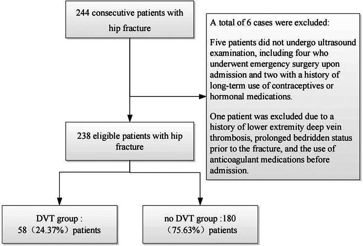Risk factor analysis and nomogram model of DVT in hip fracture patients at hospital admission