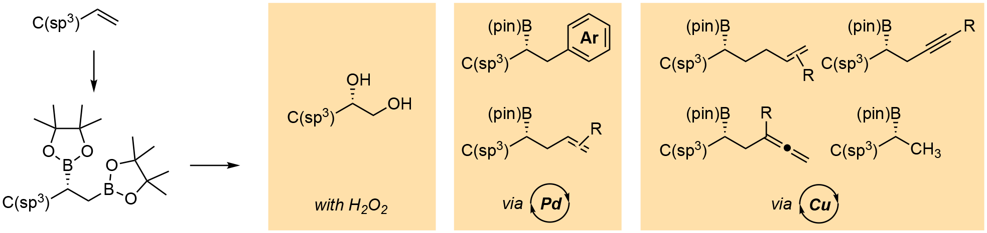 - Wang X; Wang Y; Huang W; Xia C; Wu L Direct Synthesis of Multi(boronate) Esters from Alkenes and Alkynes via Hydroboration and Boration Reactions. ACS Catal 2021, 11, 1–18.