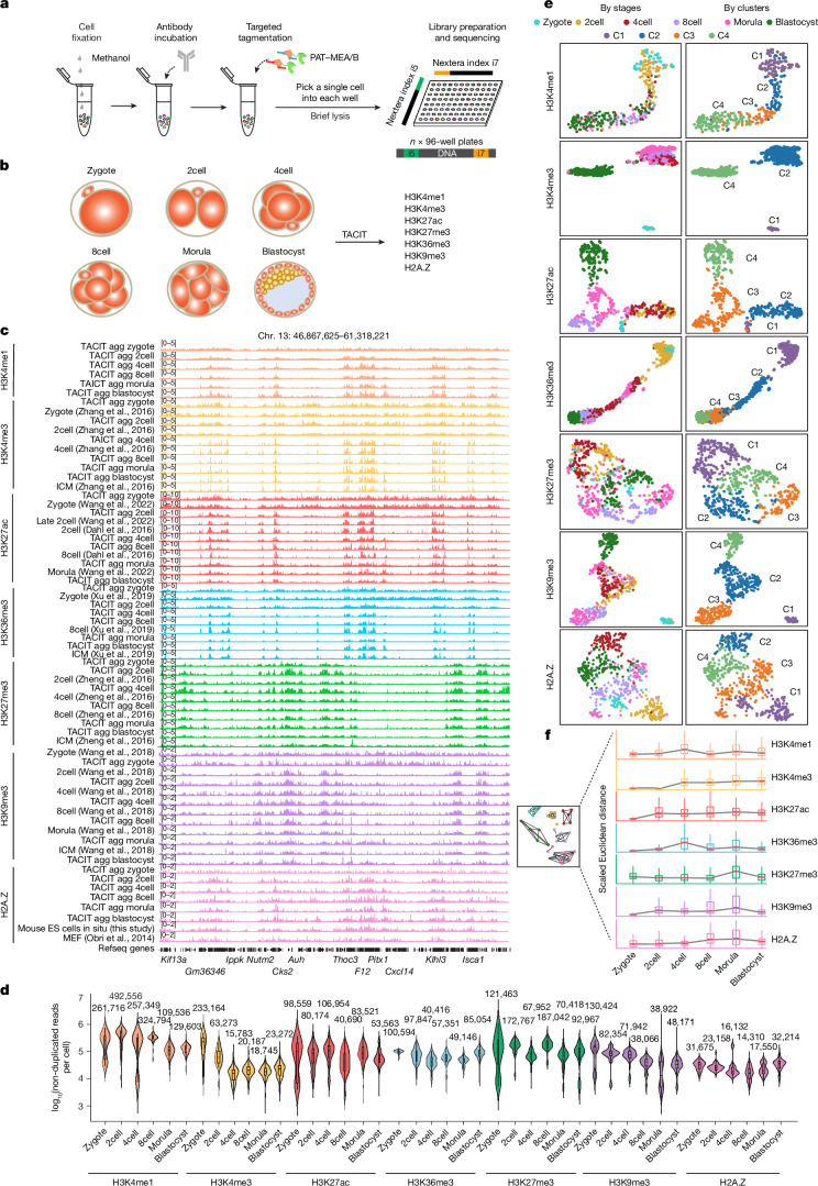 Genome-coverage single-cell histone modifications for embryo lineage tracing