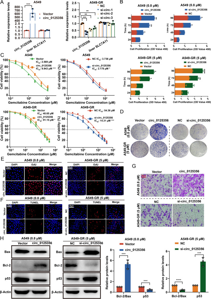 Methods: CircRNA sequencing was performed to analyze the differential expression of circRNAs between A549 and A549-GR cells. Chromogenic in situ hybridization (CISH) and immunohistochemistry (IHC) technologies were used to detect the expression of hsa_circ_0125356, miR-582-5p,and FGF9 in NSCLC tissues and para-carcinoma tissues. Fluorescence in situ hybridization (FISH), dual-luciferase reporter assays and RNA immunoprecipitation (RIP) were conducted to evaluate the expression and regulation of hsa_circ_0125356, miR-582-5p, and FGF9. Furthermore, the regulation of hsa_circ_0125356/miR-582-5p/FGF9 on gemcitabine sensitivity was confirmed by TUNEL, Transwell, EdU, CCK8 and immunohistochemistry.