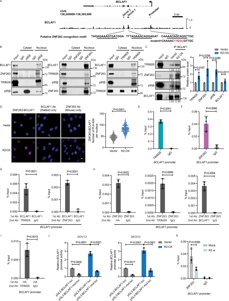 p85β is a regulatory subunit of the phosphoinositide 3-kinase (PI3K). Emerging evidence suggests that p85β goes beyond its role in the PI3K and is functional in the nucleus. In this study, we discover that nuclear p85β is enriched at gene loci and regulates gene transcription and that this regulatory role contributes to the oncogenic potential of nuclear p85β. A multi-omics approach reveals the physical interaction and functional cooperativity between nuclear p85β and a transcription factor BCLAF1. We observe genome-wide co-occupancy of p85β and BCLAF1 at gene targets associated with transcriptional responses. Intriguingly, the targetome includes BCLAF1 of which transcription is activated by p85β and BCLAF1, indicating a positive autoregulation. While BCLAF1 recruits p85β to BCLAF1 loci, p85β facilitates the assembly of BCLAF1, the scaffold protein TRIM28 and the zinc finger transcription factor ZNF263, which together act in concert to activate BCLAF1 transcription. Collectively, this study provides functional evidence and mechanistic basis to support a role of nuclear p85β in modulating gene transcription.