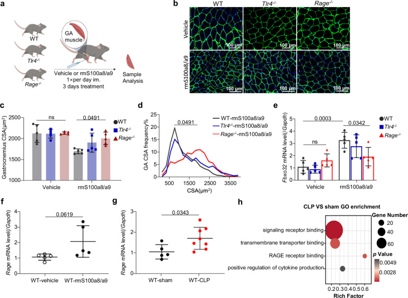 Sepsis-induced skeletal muscle atrophy is common in septic patients with the increases risk of mortality and is associated with myocellular mitochondrial dysfunction. Nevertheless, the specific mechanism of sepsis muscle atrophy remains unclear. Here we conducted a clinical retrospective analysis and observed the elevation of skeletal muscle index (ΔSMI) was an independent risk factor for 60-day mortality in septic patients. Moreover, in mouse model of sepsis, the skeletal muscle atrophy was also observed, which was associated with the upregulation of S100a8/a9-mediated mitochondrial dysfunction. Inhibition of S100a8/a9 significantly improved mitochondrial function and alleviated muscle atrophy. Conversely, administration of recombinant S100a8/a9 protein exacerbated mitochondrial energy exhaustion and myocyte atrophy. Mechanistically, S100a8/a9 binding to RAGE induced Drp1 phosphorylation and mitochondrial fragmentation, resulting in muscle atrophy. Additionally, RAGE ablation or administration of Drp1 inhibitor significantly reduced Drp1-mediated mitochondrial fission, improved mitochondrial morphology and function. Our findings indicated the pivotal role of S100a8/a9 in driving the mitochondrial fragmentation in septic muscle atrophy. Targeting S100a8/a9-RAGE-initiated mitochondrial fission might offer a promising therapeutic intervention against septic muscle atrophy.