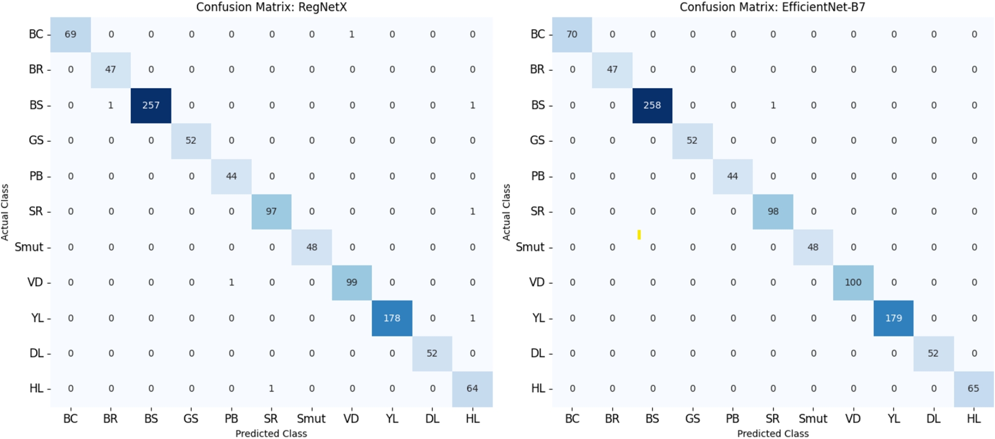 Discussion: The study demonstrates the effectiveness of DL models, particularly EfficientNet-B7 and DenseNet201, for fast, accurate, and automatic disease detection in sugarcane leaves. These systems offer a significant improvement over traditional manual methods, enabling farmers and agricultural managers to make timely and informed decisions, ultimately reducing crop loss and enhancing overall sugarcane yield. This work highlights the transformative potential of DL in agriculture.