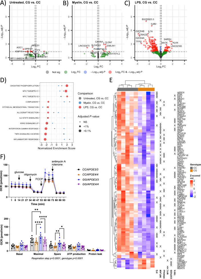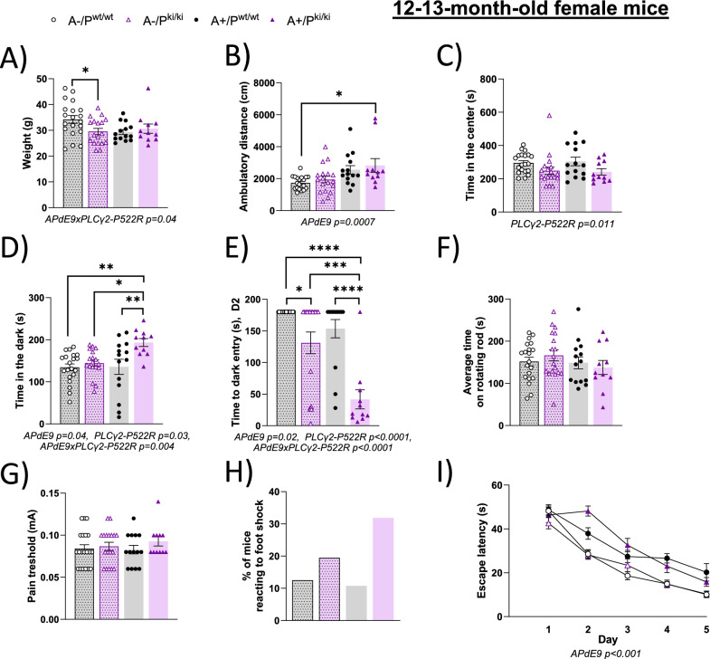 Results: The PLCγ2-P522R variant decreased β-amyloid plaque count and coverage in female APP/PS1 mice. Moreover, the PLCγ2-P522R variant promoted anxiety in these mice. The area of the microglia around β-amyloid plaques was also increased in mice carrying the PLCγ2-P522R variant, while β-amyloid plaque-associated neuronal dystrophy and the levels of certain cytokines, including IL-6 and IL-1β, were reduced. These alterations were revealed through [18F]FEPPA PET imaging and behavioral studies, as well as various cytokine immunoassays, transcriptomic and proteomic analyses, and immunohistochemical analyses using mouse brain tissues. In cultured mouse primary microglia, the PLCγ2-P522R variant reduced the size of lipid droplets. Furthermore, transcriptomic and proteomic analyses revealed that the PLCγ2-P522R variant regulated key targets and pathways involved in lipid metabolism, mitochondrial fatty acid oxidation, and inflammatory/interferon signaling in acutely isolated adult mouse microglia and human monocyte-derived microglia-like cells. Finally, the PLCγ2-P522R variant also increased mitochondrial respiration in human iPSC-derived microglia.