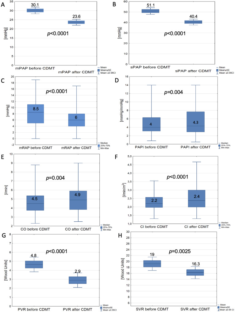 Results: Our analysis included 150 patients, 72% with intermediate-high PE and 28% with high-risk PE. Systemic thrombolysis was contraindicated in 33.3%, whereas in 4% it failed. There were 2% intraprocedural deaths (1.3% due to RV failure and 0.7% due to massive interstitial bleeding), with no more deaths during follow-up. In 0.7%, CDMT was converted to open surgery, and in 0.7%, bailout systemic thrombolysis and extracorporeal oxygenation support. Major bleedings occurred in 1.3% within 48 h post CDMT. Immediate hemodynamic improvements included a mean 11.3±10 mmHg (22.1%) drop in systolic pulmonary arterial pressure (p < 0.0001) and a median 0.33 (0.25-0.45), (25.2%) drop in RV/LV ratio (p < 0.0001 for paired values), CONCLUSIONS: Aspiration thrombectomy with the Lightning 12 system characterizes an acceptable safety profile, substantial improvements in hemodynamic outcomes, and low mortality for patients with intermediate-high and high-risk PE.