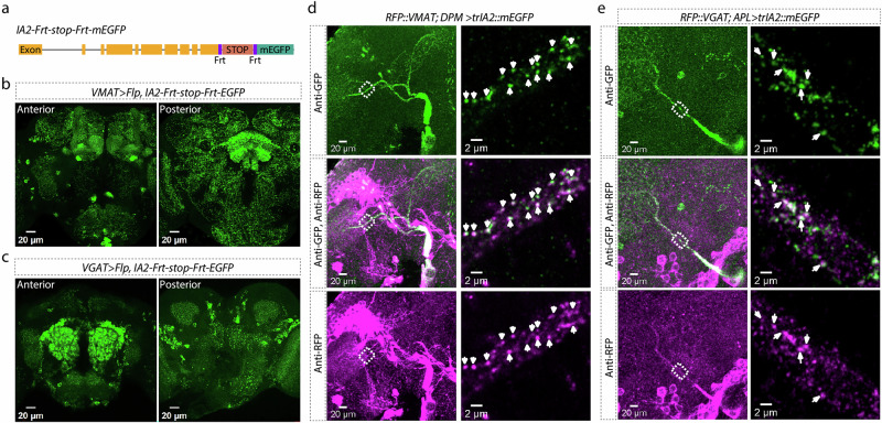 Neuronal dense core vesicles (DCVs) store and release a diverse array of neuromodulators, trophic factors, and bioamines. The analysis of single DCVs has largely been possible only using electron microscopy, which makes understanding cargo segregation and DCV heterogeneity difficult. To address these limitations, we develop genetically encoded markers for DCVs that can be used in combination with standard immunohistochemistry and expansion microscopy to enable single-vesicle resolution with confocal microscopy in Drosophila.