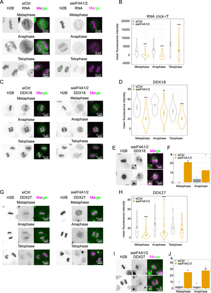The DEAD-box helicase eIF4A1/2 acts as RNA chaperone during mitotic exit enabling chromatin decondensation