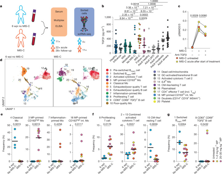 Competing interests: M.-F.M., C.C.G., T.K. and P.D. filed a patent using TGFβ blockade for management of MIS-C and other post-COVID-19 sequelae. S.P. is an employee of bioMérieux. Y.O. received lecture fees from Pfizer on topics unrelated to this article. S.O. received speaker and/or consultancy fees from Novartis and Sobi on topics unrelated to this article. The authors declare no further competing interests.