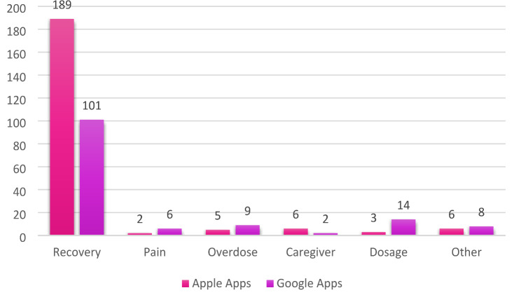 Methods: Our team conducted a content analysis of publicly available opioid-related apps identified via web-scraping in the Apple and Google app stores. Using a two-step qualitative coding process, we first identified which apps were meaningfully related to OUD recovery and second identified what tools, if any, these apps provided.