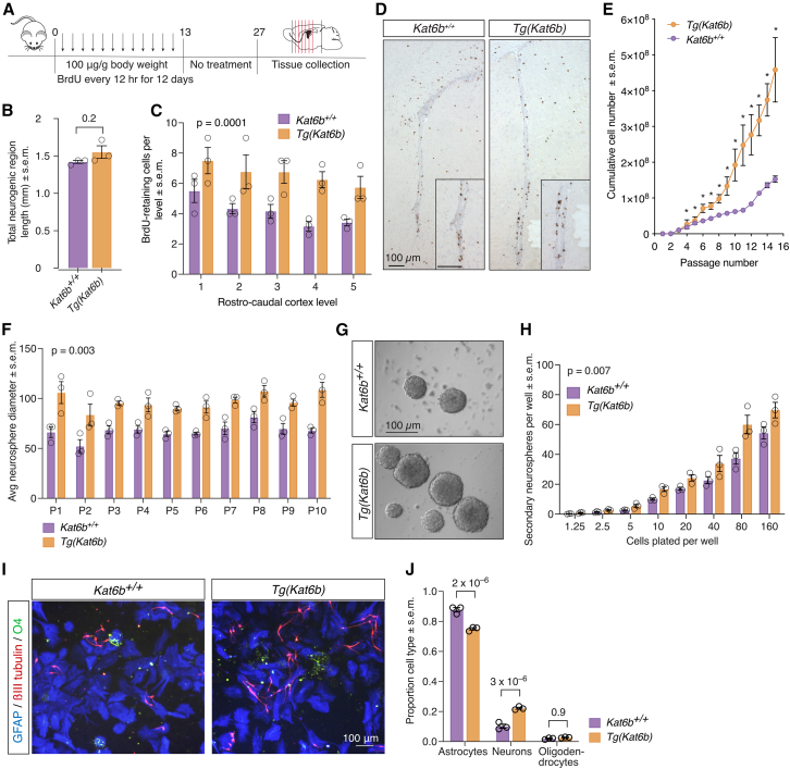 Loss of the gene encoding the histone acetyltransferase KAT6B (MYST4/MORF/QKF) causes developmental brain abnormalities as well as behavioral and cognitive defects in mice. In humans, heterozygous variants in the KAT6B gene cause two cognitive disorders, Say-Barber-Biesecker-Young-Simpson syndrome (SBBYSS; OMIM:603736) and genitopatellar syndrome (GTPTS; OMIM:606170). Although the effects of KAT6B homozygous and heterozygous mutations have been documented in humans and mice, KAT6B gain-of-function effects have not been reported. Here, we show that overexpression of the Kat6b gene in mice caused aggression, anxiety, and spontaneous epilepsy. Kat6b overexpression led to an increase in histone H3 lysine 9 acetylation and upregulation of genes driving nervous system development and neuronal differentiation. Kat6b overexpression additionally promoted neural stem cell proliferation and favored neuronal over astrocyte differentiation in vivo and in vitro. Our results suggest that, in addition to loss-of-function alleles, gain-of-function KAT6B alleles may be detrimental for brain development.