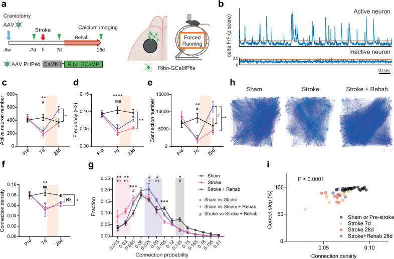 Motor disability is a critical impairment in stroke patients. Rehabilitation has a limited effect on recovery; but there is no medical therapy for post-stroke recovery. The biological mechanisms of rehabilitation in the brain remain unknown. Here, using a photothrombotic stroke model in male mice, we demonstrate that rehabilitation after stroke selectively enhances synapse formation in presynaptic parvalbumin interneurons and postsynaptic neurons in the rostral forelimb motor area with axonal projections to the caudal forelimb motor area where stroke was induced (stroke-projecting neuron). Rehabilitation improves motor performance and neuronal functional connectivity, while inhibition of stroke-projecting neurons diminishes motor recovery. Stroke-projecting neurons show decreased dendritic spine density, reduced external synaptic inputs, and a lower proportion of parvalbumin synapse in the total GABAergic input. Parvalbumin interneurons regulate neuronal functional connectivity, and their activation during training is necessary for recovery. Furthermore, gamma oscillation, a parvalbumin-regulated rhythm, is increased with rehabilitation-induced recovery in animals after stroke and stroke patients. Pharmacological enhancement of parvalbumin interneuron function improves motor recovery after stroke, reproducing rehabilitation recovery. These findings identify brain circuits that mediate rehabilitation-recovery and the possibility for rational selection of pharmacological agents to deliver the first molecular-rehabilitation therapeutic.