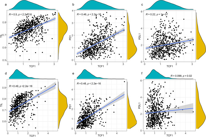 Results: PAK1 expression was elevated in NSCLC tissues and cells, while TCF1 was significantly downregulated. PAK1 expression showed a significant inverse correlation with TCF1 mRNA in NSCLC. Silencing PAK1 (using shRNAs) and inhibiting PAK1 with the small molecule IPA-3 suppressed NSCLC cell malignancy in a dose-dependent manner, upregulating TCF1 expression, and vice versa. TCF1 amplification with the small molecule (TWS119) inhibited NSCLC cell proliferation, migration, and invasion in a dose-dependent manner without affecting PAK1 expression. Immunoprecipitation analysis confirmed PAK1 and TCF1 interaction in NSCLC. Joint survival analysis indicated that high PAK1 and low TCF1 expression were associated with unfavourable survival in patients with NSCLC. Lastly, the TCF1 was significantly correlated with immune cell infiltration [CD8+ T cell, and tumor infiltrating lymphocytes (TILs)], immune checkpoint inhibitors (PD1, PDL1), and can accurately predict the immunotherapeutic response.