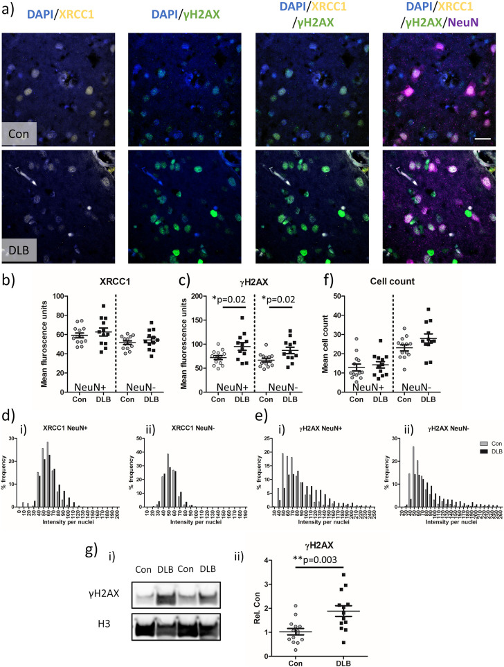 Methods: DNA damage and aSyn pathology were assessed in fixed lateral temporal cortex from clinically and neuropathologically confirmed DLB cases and controls, as well as in cortical tissue from young 3-month-old presymptomatic A30P-aSyn mice. Frozen lateral temporal cortex from DLB and control cases was subject to nuclear isolation, western blotting, aSyn seed amplification and proteomic characterisation via mass spectrometry.