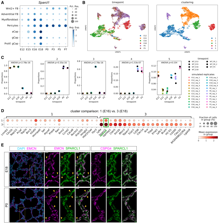 Keywords: SPARCL1; alveolar type 2 cells; cell differentiation; endothelial cells; extracellular matrix; lung alveologenesis; lung development; lung organoids; pericytes; vascular-epithelial crosstalk.