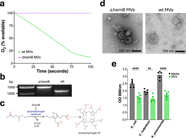 Inflammation damages the epithelial cell barrier, allowing oxygen to leak into the lumen of the gut. Respiring E. coli and other Enterobacteriaceae produce proinflammatory lipopolysaccharide, exacerbating inflammatory bowel disease. Here we show that respiring membrane vesicles (MV) from E. coli ameliorate symptoms in a mouse model of gut inflammation. Membrane vesicle treatment diminished weight loss and limited shortening of the colon. Notably, oxygenation of the colonic epithelium was significantly decreased in animals receiving wild type MVs, but not MVs from an E. coli mutant lacking cytochromes. Metatranscriptomic analysis of the microbiome shows an increase in anaerobic Lactobacillaceae and a decrease in Enterobacteriaceae, as well as a general shift towards fermentation in MV-treated mice. This is accompanied by a decrease in proinflammatory TNF-α. We report that MVs may lead to the development of a novel type of a therapeutic for dysbiosis, and for treating IBD.